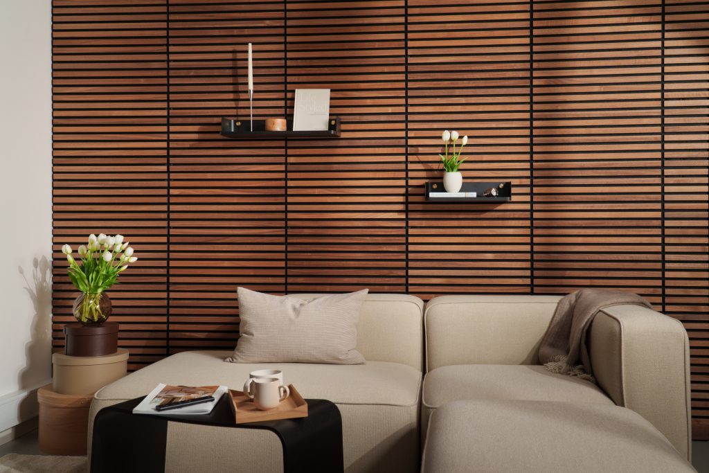 Sound dampening slatwall panels designed to reduce echo and elevate the look and feel of your space.