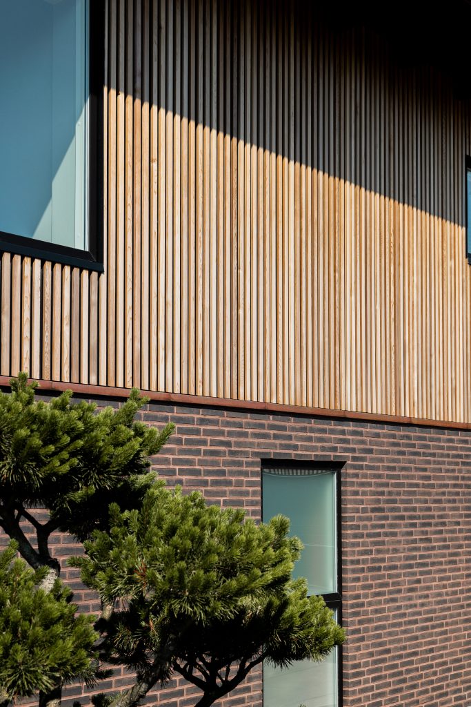 Aluwood combines genuine wood veneer with an aluminum core, creating an exclusive look with maximum durability. The natural wood appearance adds warmth and elegance to any facade, while outperforming traditional wood cladding in both lifespan and maintenance-free performance. With Aluwood, you can offer your customers a unique solution that stands out from standard materials.