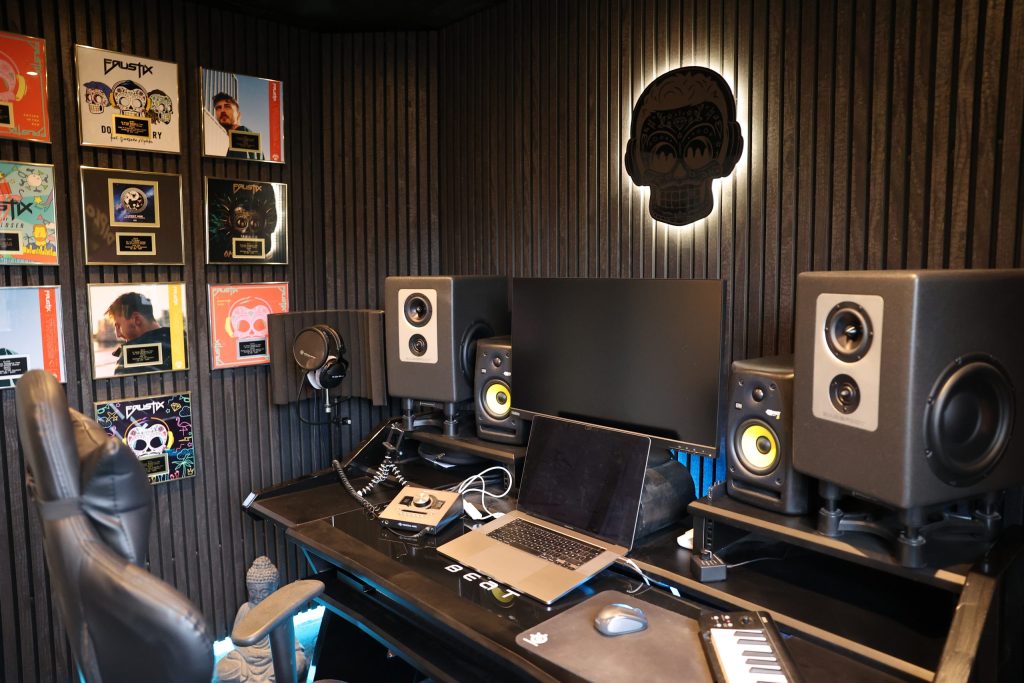 During our interview with Faustix in his home studio, we couldn’t help but notice that his living room is just 30 meters away, while his bedroom is a mere 40 meters away.