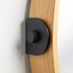 The WoodUpp Mirror is made from Ø60 cm premium glass with a durable plywood frame in natural oak or black veneer. Total width, including the side screws, is 62.8 cm.