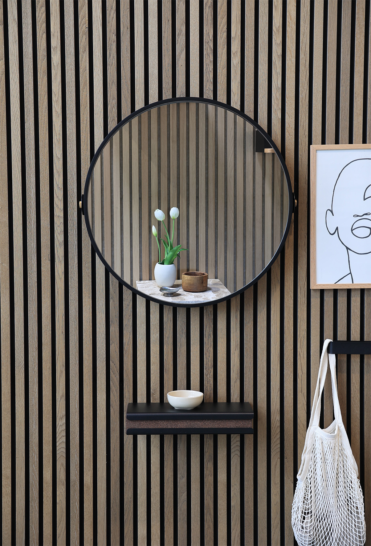 At 60 cm across, the Mirror is just the right size for hallways, bedrooms, or bathrooms. Add a backlight behind it or center one of our floating shelves underneath for a complete, balanced look.