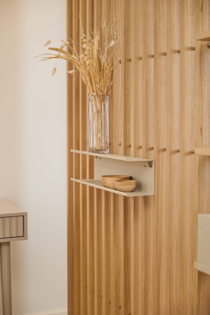 The Nell Double Metal Shelf gives you extra storage exactly where you need it —without adding visual weight. It keeps everyday items and décor within reach, while the open design helps the Embrace room divider stay light, clean, and uncluttered.