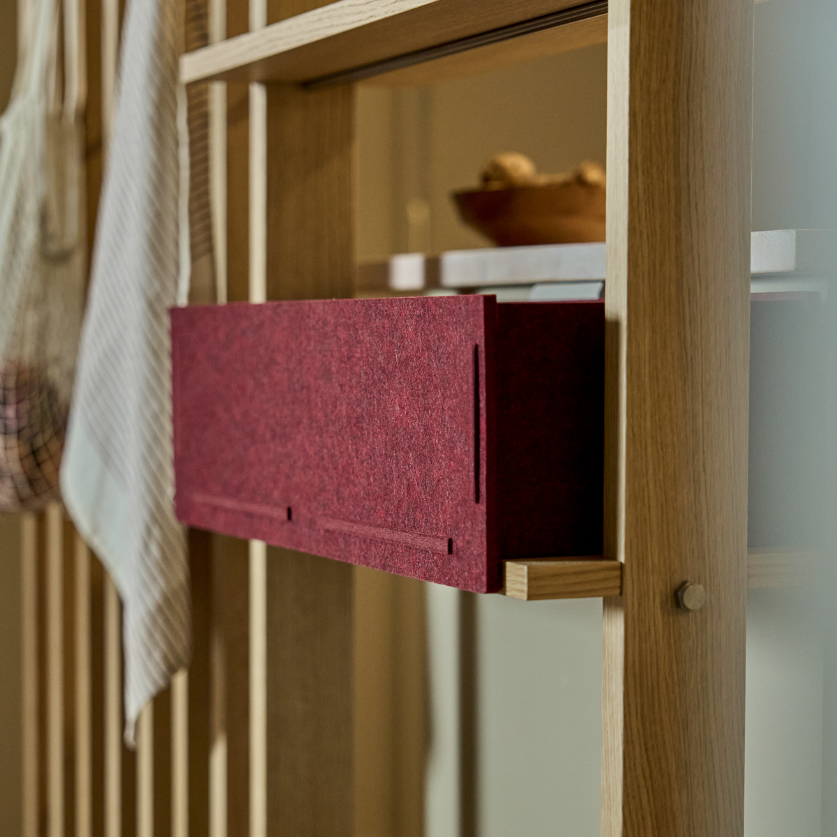 The Vigg Felt Box is made to fit the Lova Wood Shelf perfectly. The size, soft felt, and clean edges sit naturally on the shelf — turning open storage into a calm, organized space that’s easy to live with.