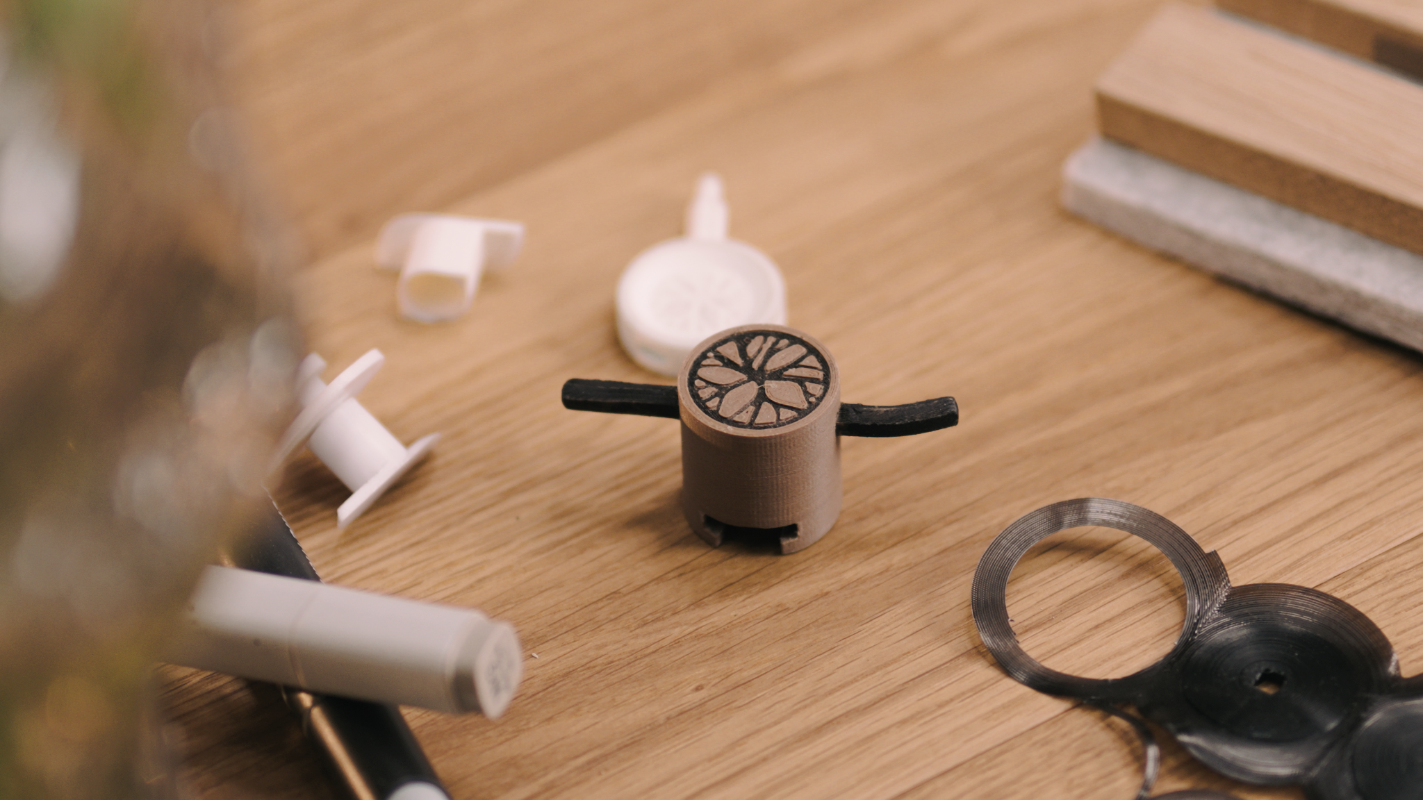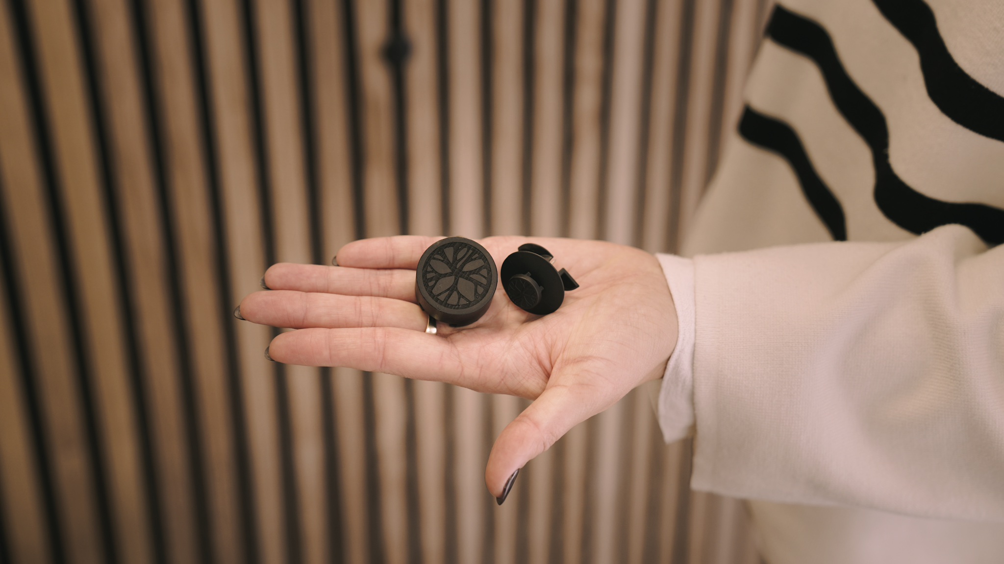 Martin thrives on finding simple solutions to complex problems. That mindset led him to sketch out new concepts – starting with the idea of hanging picture frames. He created a 3D-printed prototype with wings that locked behind the slats and held in place using a vise-like grip.