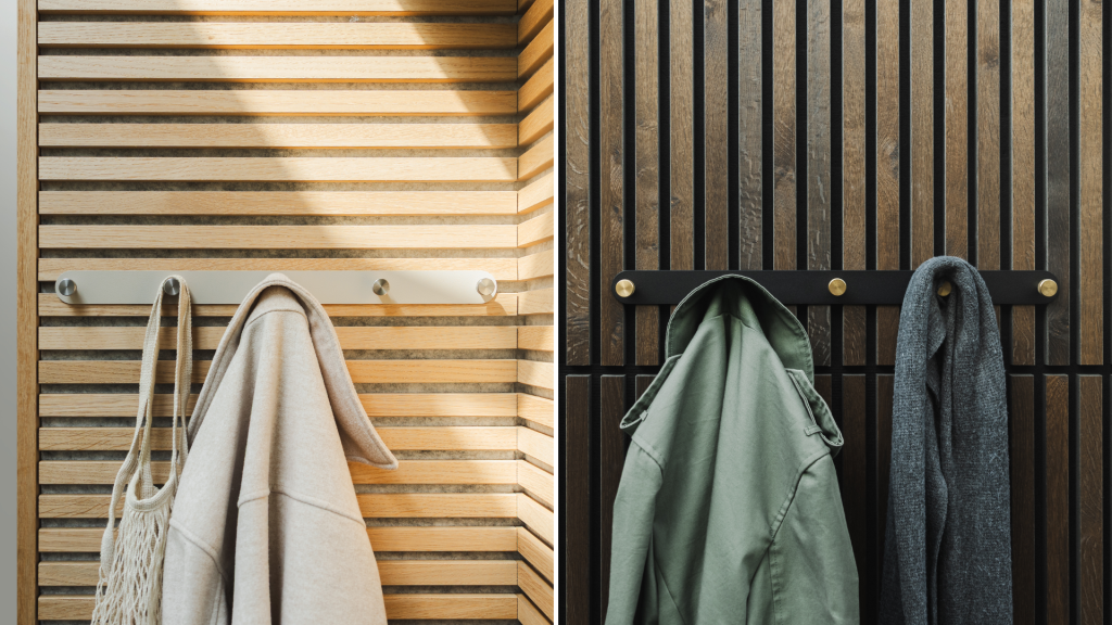 Crafted from powder‑coated stainless steel, it’s smooth, durable, and perfectly matched to your panels. Choose beige with stainless steel hooks for a soft, calm vibe, or black with brass hooks for a bolder statement. Both come with either five or seven hooks, so you can pick what fits your space.
