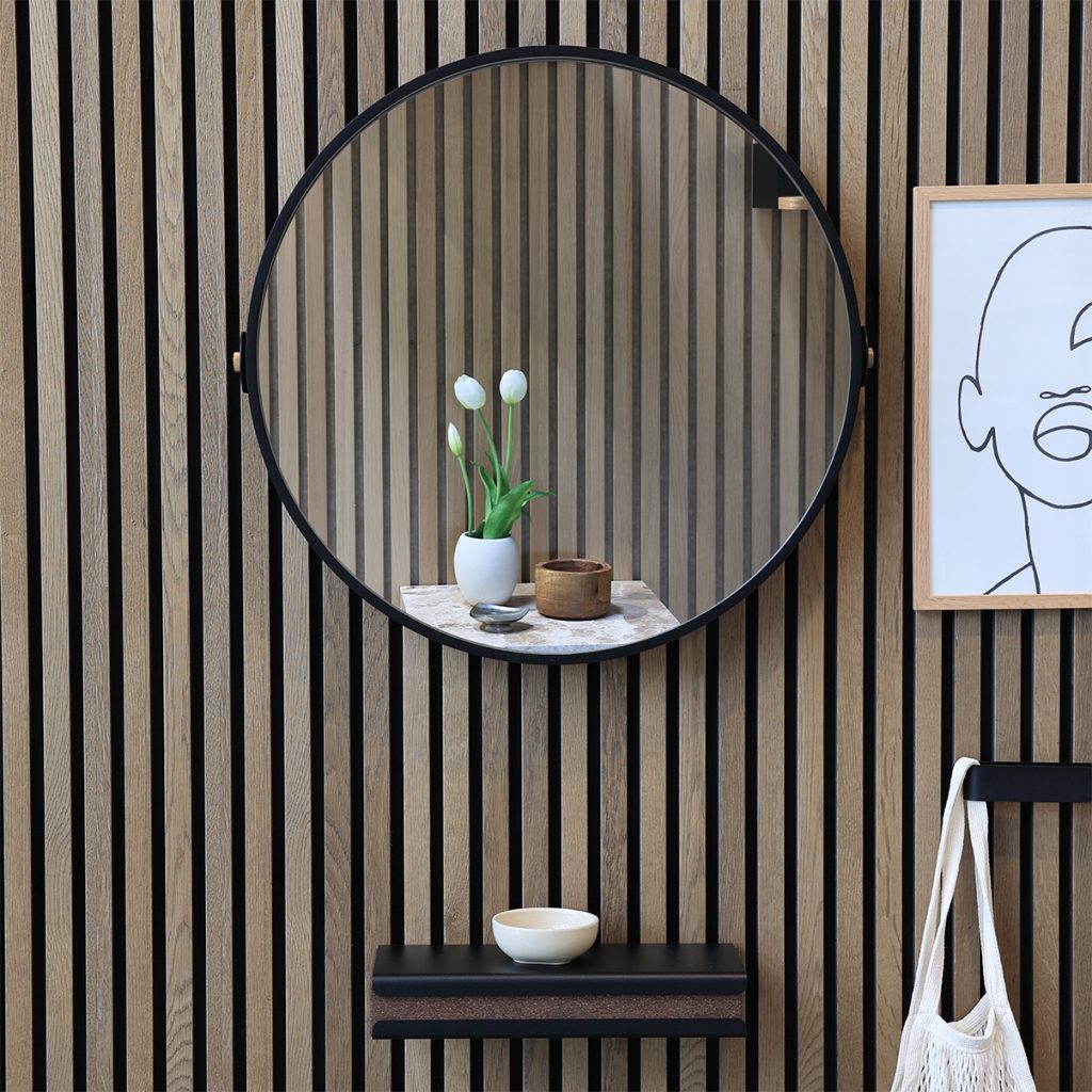 At 60 cm across, the Mirror is just the right size for hallways, bedrooms, or bathrooms. Add a backlight behind it or center one of our floating shelves underneath for a complete, balanced look.
