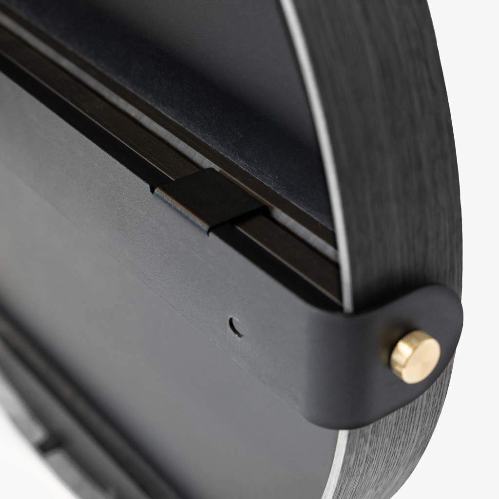 Yes, you can choose between a natural oak or black veneer frame, and you also get both black and brass screws to match your style preference.