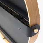 The WoodUpp Mirror is made from D23.622in premium glass with a durable plywood frame in natural oak or black veneer. Total width, including the side screws, is 24.724in.