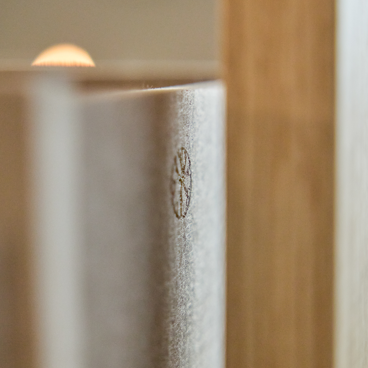Embrace | BM2 is one of the two core modules in the Embrace system. Crafted from oak veneer and stainless steel, BM2 mounts between floor and ceiling and helps create calm zones where light can still flow freely.