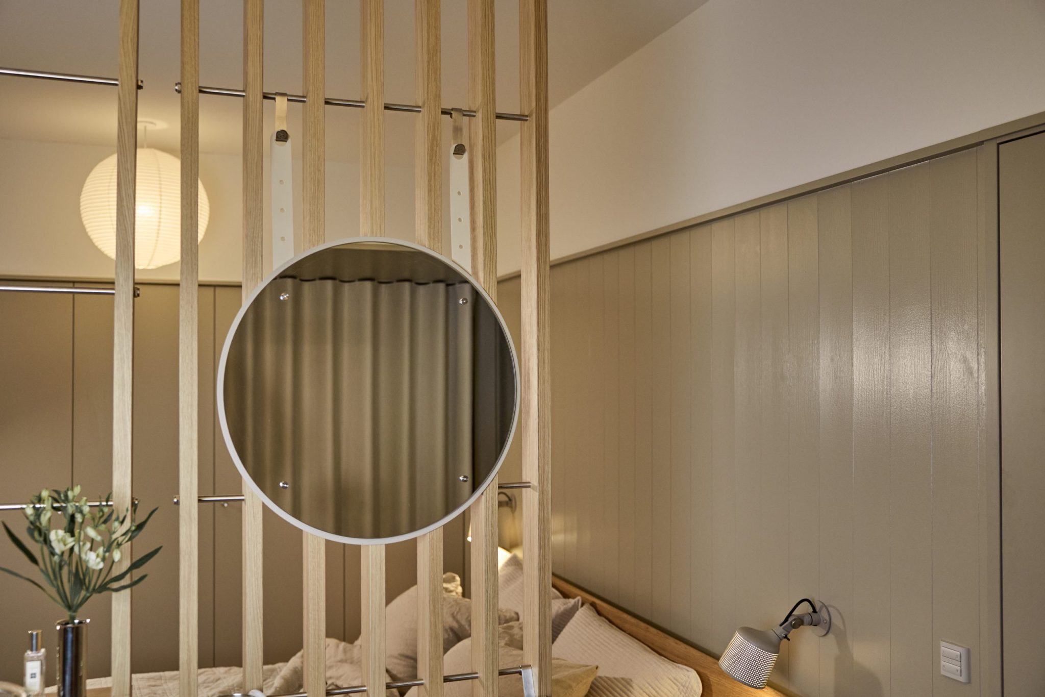 The Vala Mirror is a height-adjustable mirror made specifically for Embrace | BM1. You hang it directly on the structure using hooks and adjustable straps, so you can place it exactly where it fits your daily routine. The straps also let you move the mirror up or down when needed, so you can adjust it for different users or moments and slide it along BM1 as your setup changes.